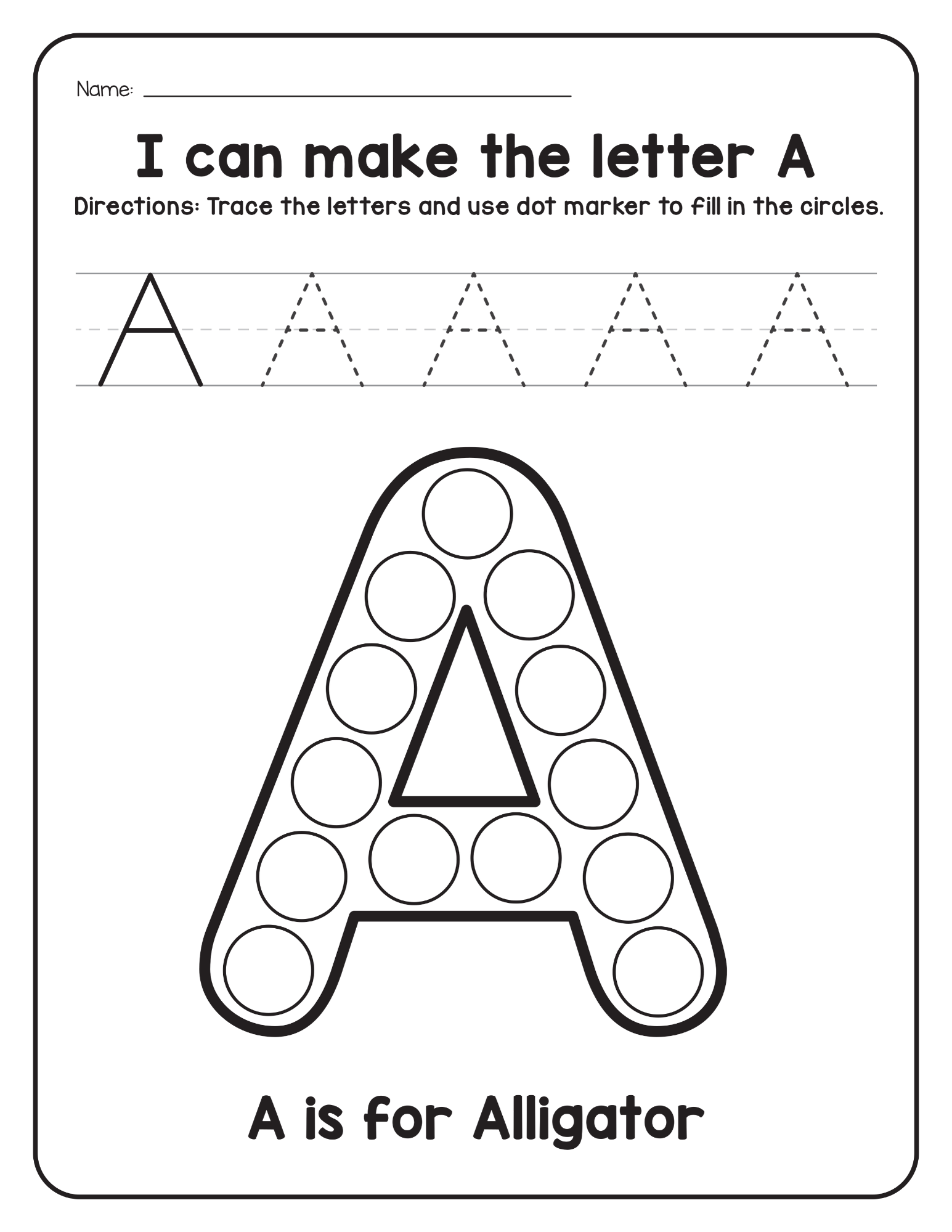 → A–Z Animals Dot Marker Worksheets (52 Pages)