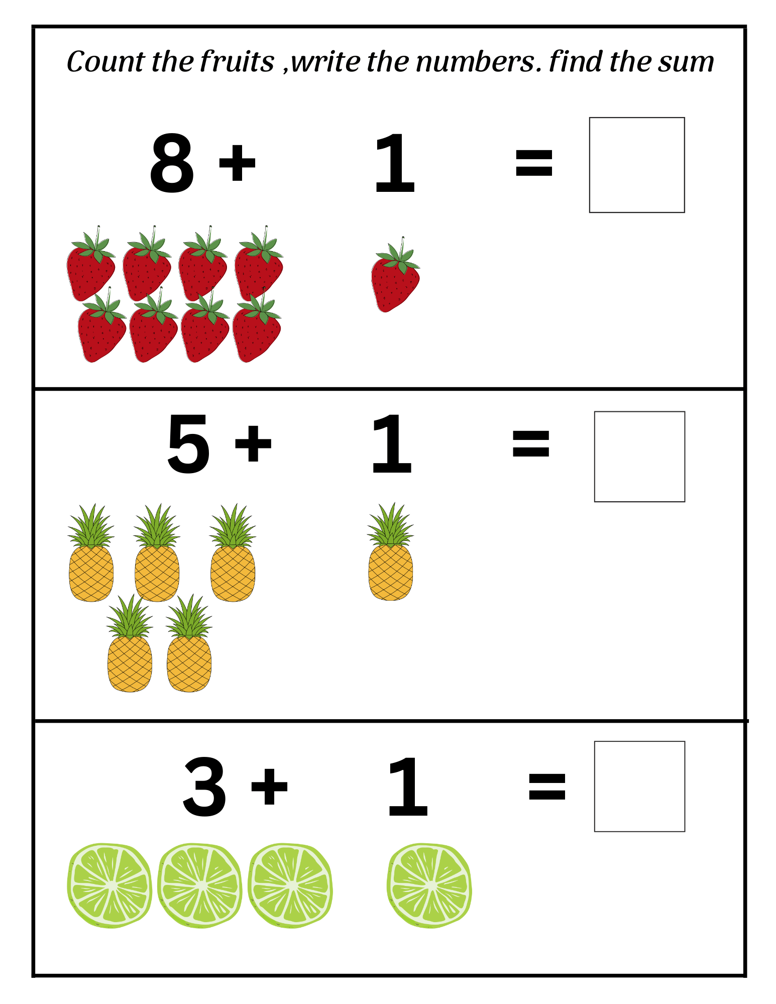 Introduces basic addition concepts using child-friendly visuals.